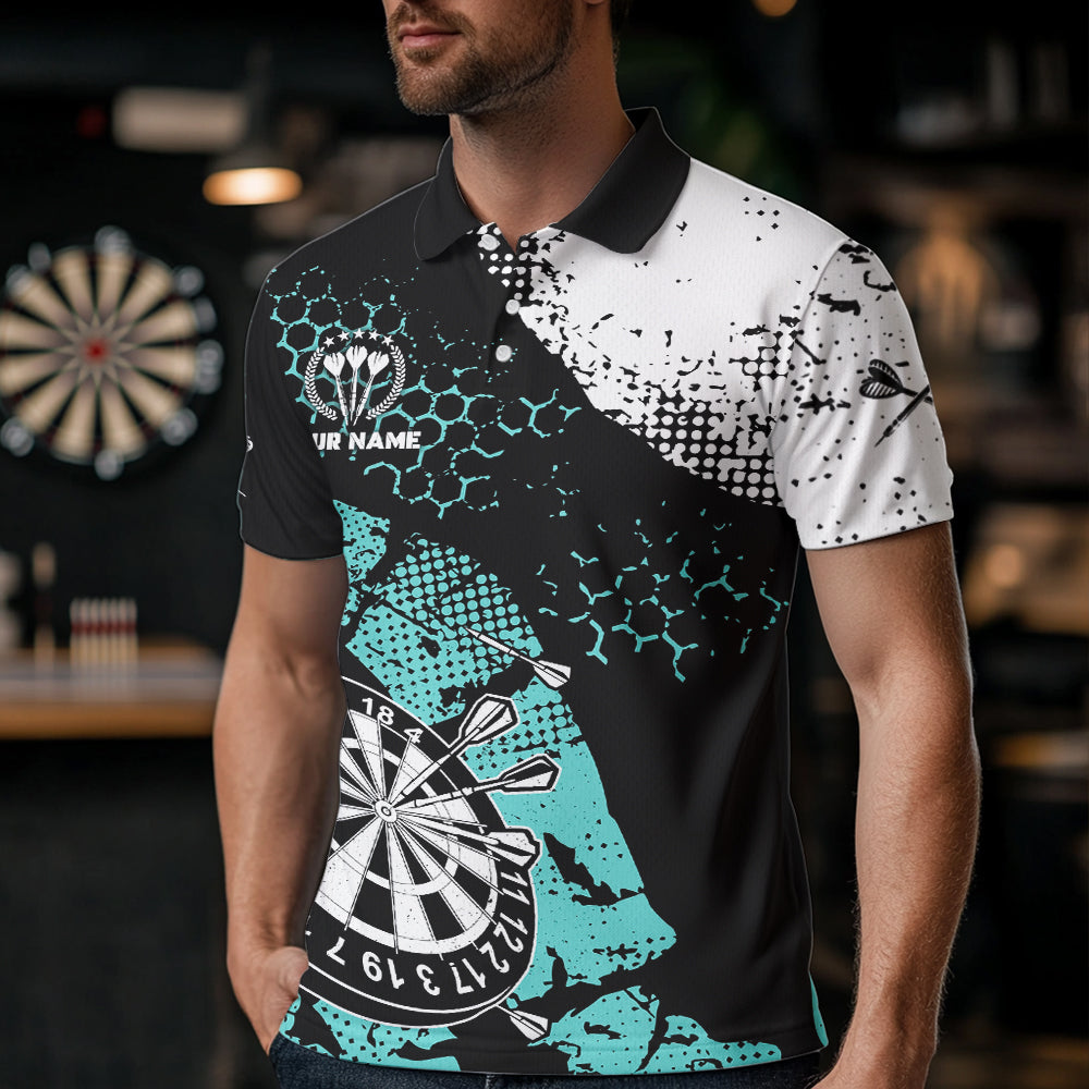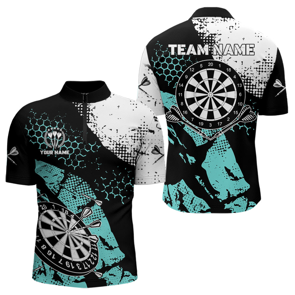Turquoise Grunge Darts Polo, 1/4 Zip Custom Dart Shirt For Men Darts Jerseys TDM3542