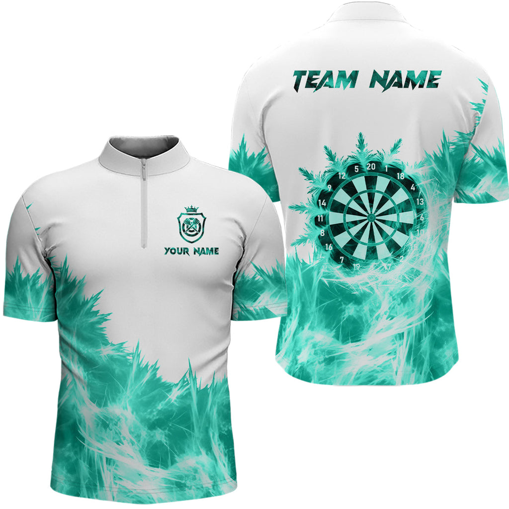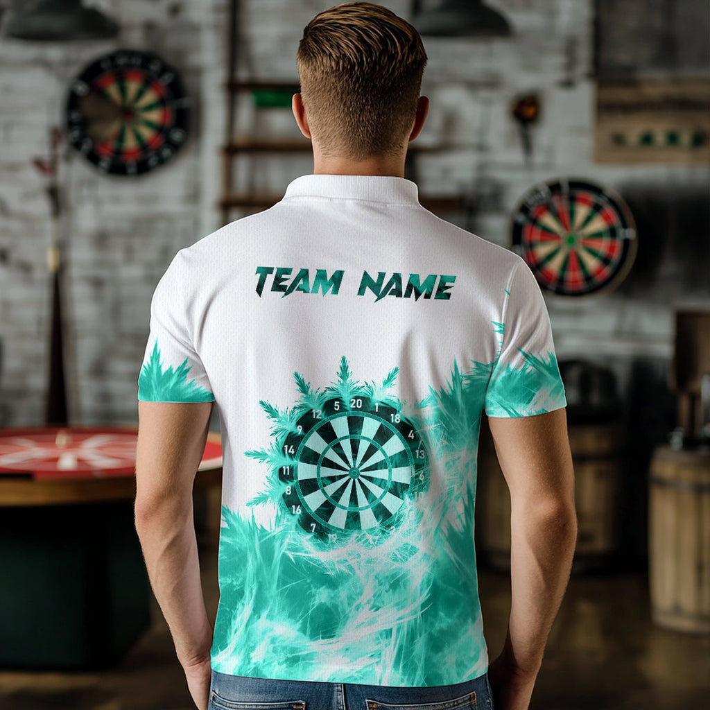 Icy Turquoise Light White Darts Polo & Quarter Zip Custom Dart Shirts For Men Team Darts Jerseys  TDM3682