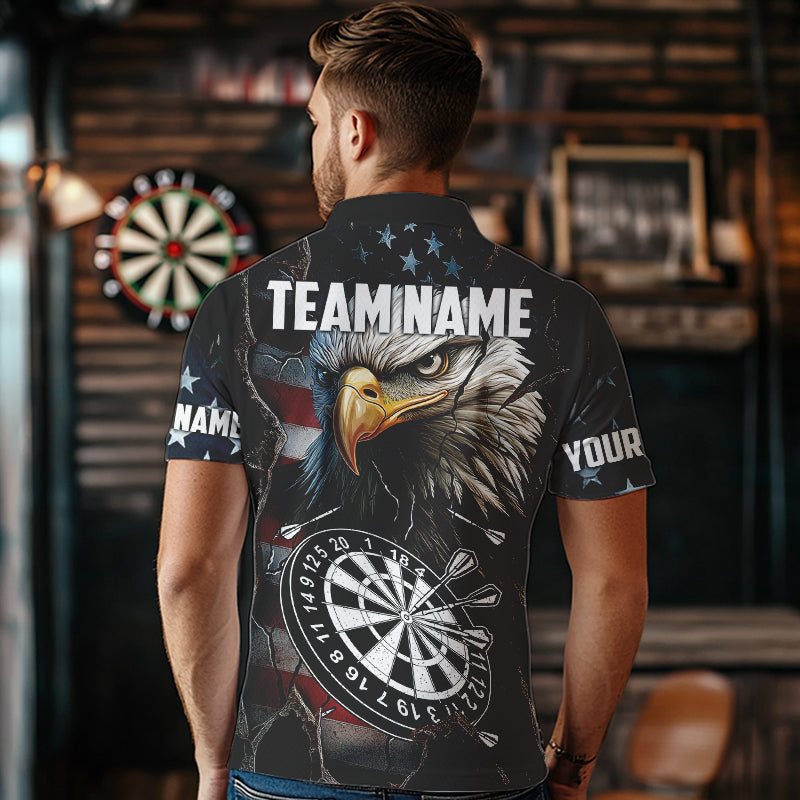 Personalized Eagle American flag Dart Polo, Quarter Zip Shirt for Men Custom Patriotic Darts Jersey NQS9521