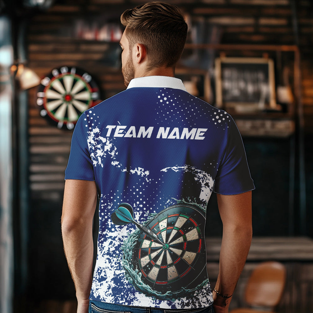 Personalized White & Blue Grunge Darts Shirt For Men Custom Dart Outfit Team Jersey NQS9510