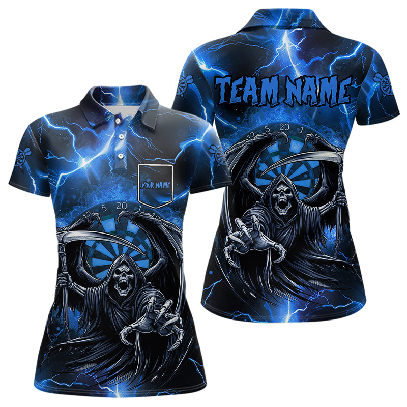 Blue Death Skeleton Custom Thunder Lightning Women Dart Shirts, Darts Jerseys TDM3550