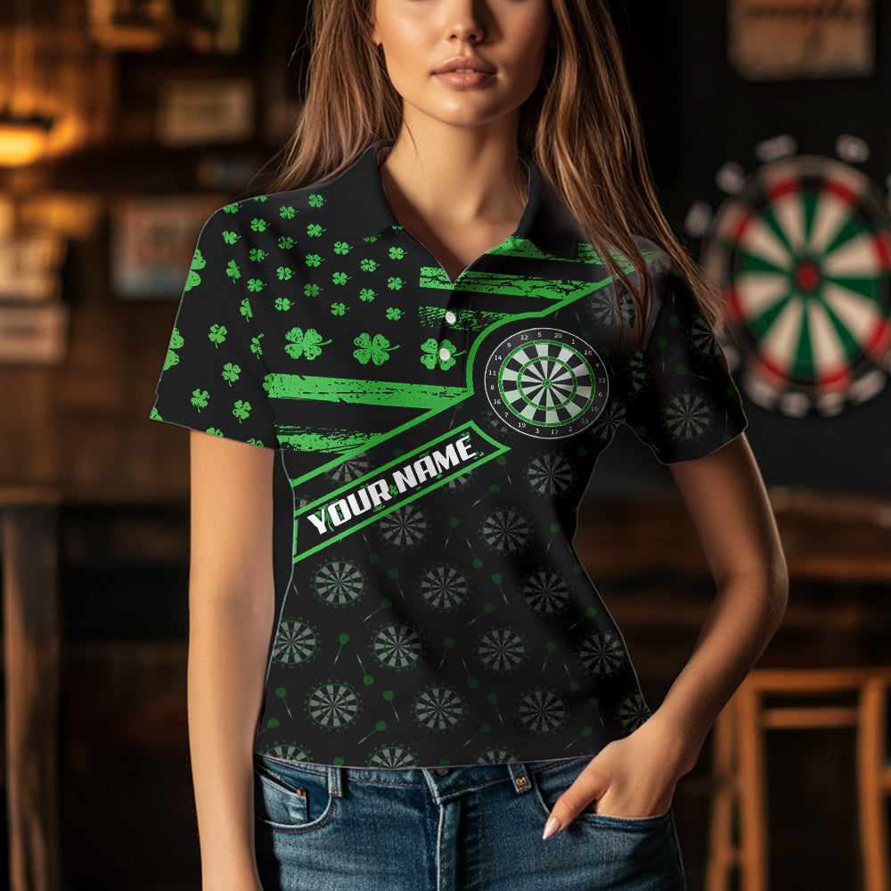 Green Shamrock Retro US Flag Patriotic Darts Shirts For Women Custom St Patrick Day Darts Jerseys TDM3560