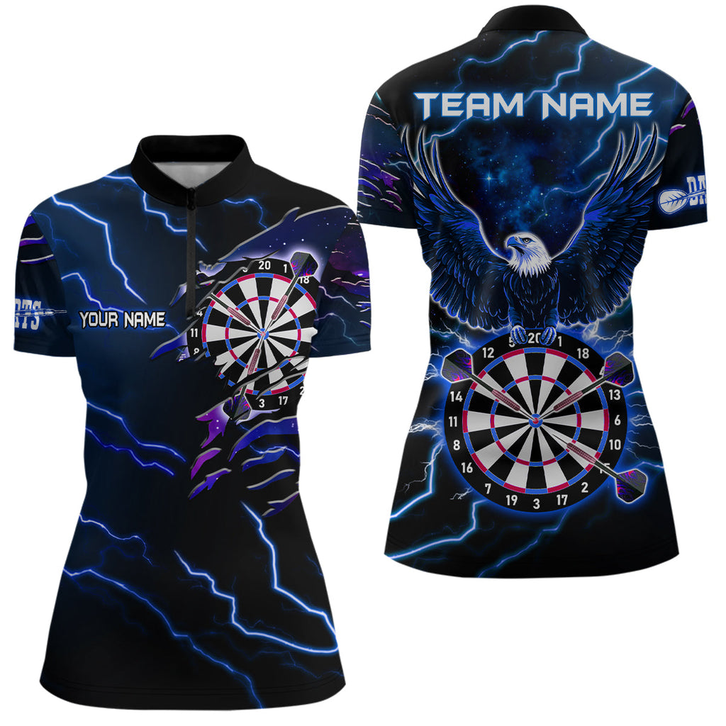 Personalized Thunder Lightning Eagle Blue Darts Shirt Polo & Quarter Zip For Women Dart Team Jersey TDM3580