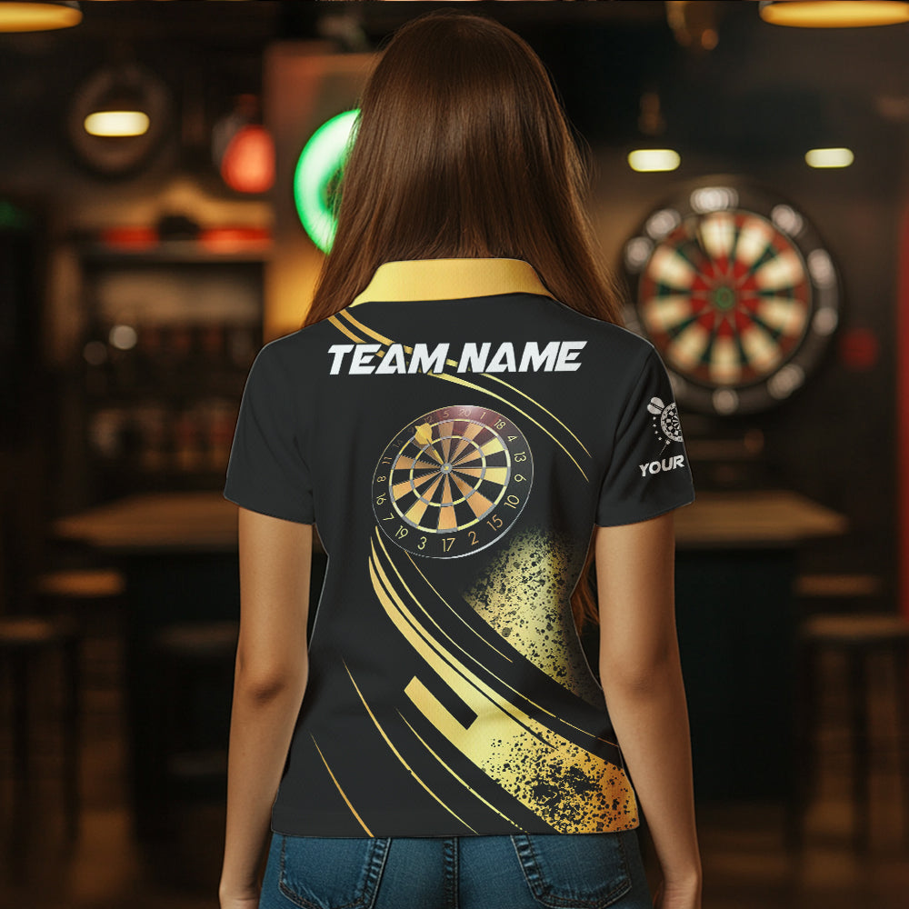 Personalized Gradient Gold And Black Darts Polo, Quarter Zip Custom Dart Shirts For Women Dart Jersey TDM3642