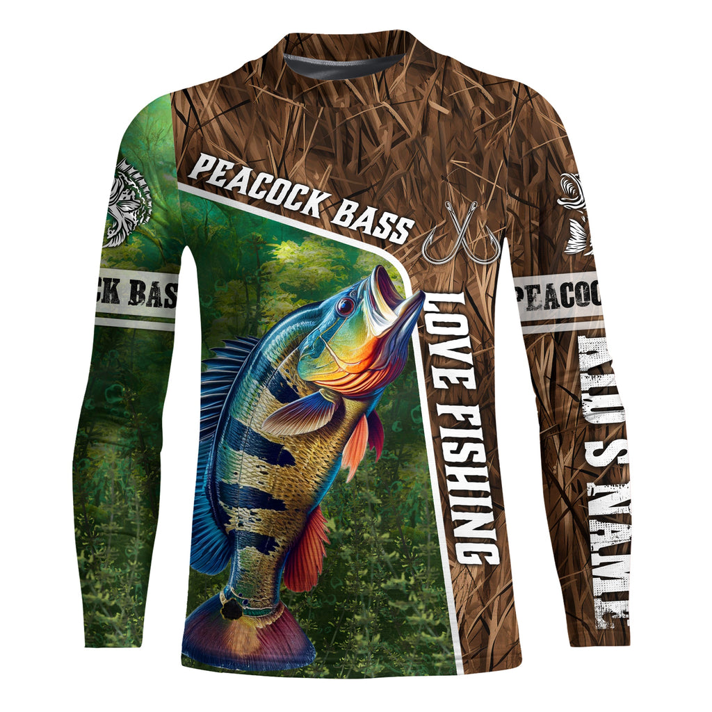 Personalized Peacock bass Fishing Shirts, Love Fishing Camo fish on 3D All Over Printed Shirts NQS5901