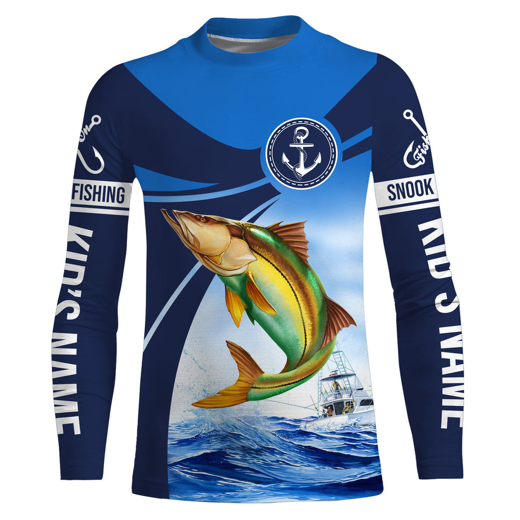 Snook fishing blue sea underwater ocean Custom Name performance long sleeve fishing shirt NQS3781