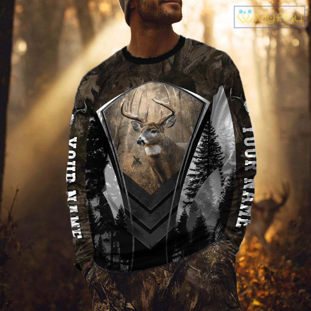 Designed for deer hunters and outdoor enthusiasts, this shirt blends style, comfort, breathable and funtionality in one. The unique hunting-inspired design can be personalized with your name, along with details like the American flag, camouflage patterns, and more - making it the perfect gift ideas for hunters during deer hunting season.