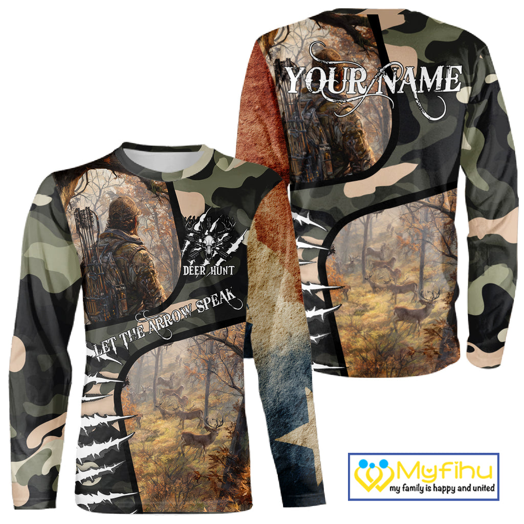 Camouflage Bow Hunting Custom Name Hoodie, Longsleeve Shirt, Perfect for Elk Season NBT08