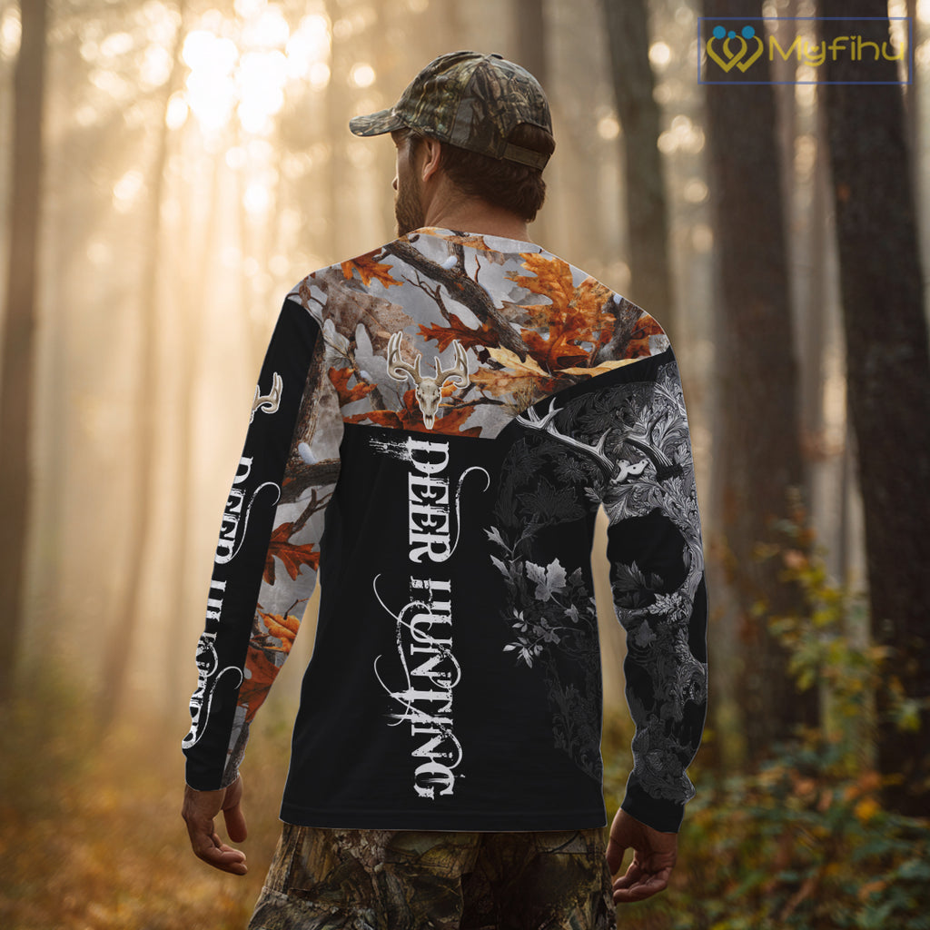 Inspired by the thrill of the hunt and the beauty of the outdoors, this shirt combines durability, comfort, and a unique hunting vibe. Customize it with your name or preferred design elements — from deer graphics to scenic landscapes — to create a one-of-a-kind piece. A perfect gift for passionate deer hunters and outdoor lovers, especially during hunting season.