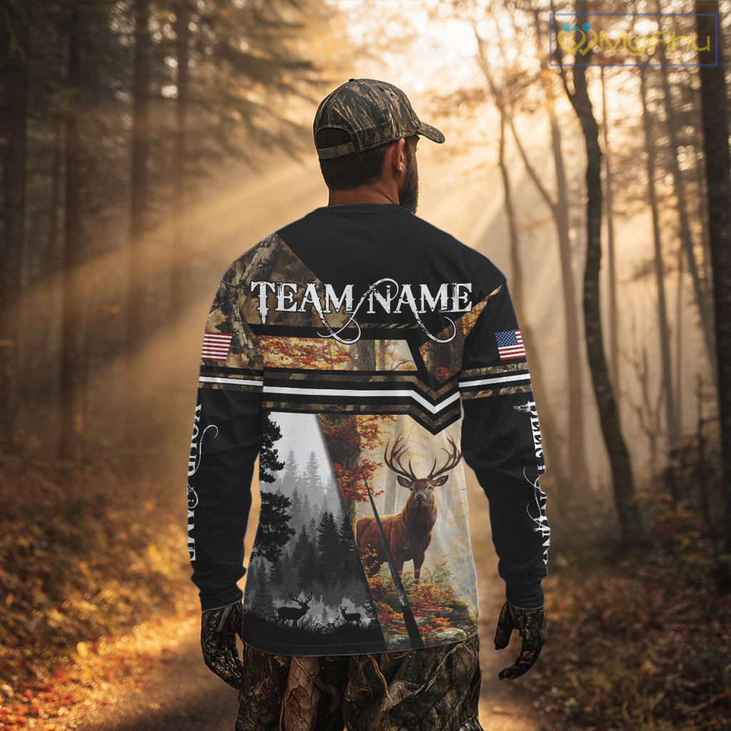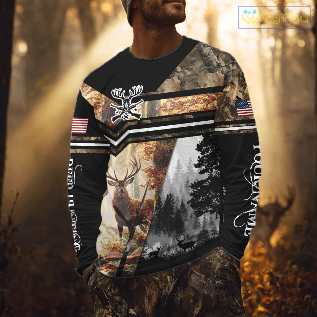 Designed for elk hunters and outdoor enthusiasts, this shirt blends style, comfort, breathable and funtionality in one. The unique hunting-inspired design can be personalized with your name, along with details like the American flag, camouflage patterns, and more - making it the perfect gift ideas for hunters during elk hunting season.