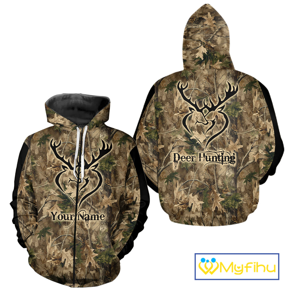 Deer Hunting Camouflage Customize Name 3D All Over Printed Shirts Hunting Outfits for Hunters NBT117