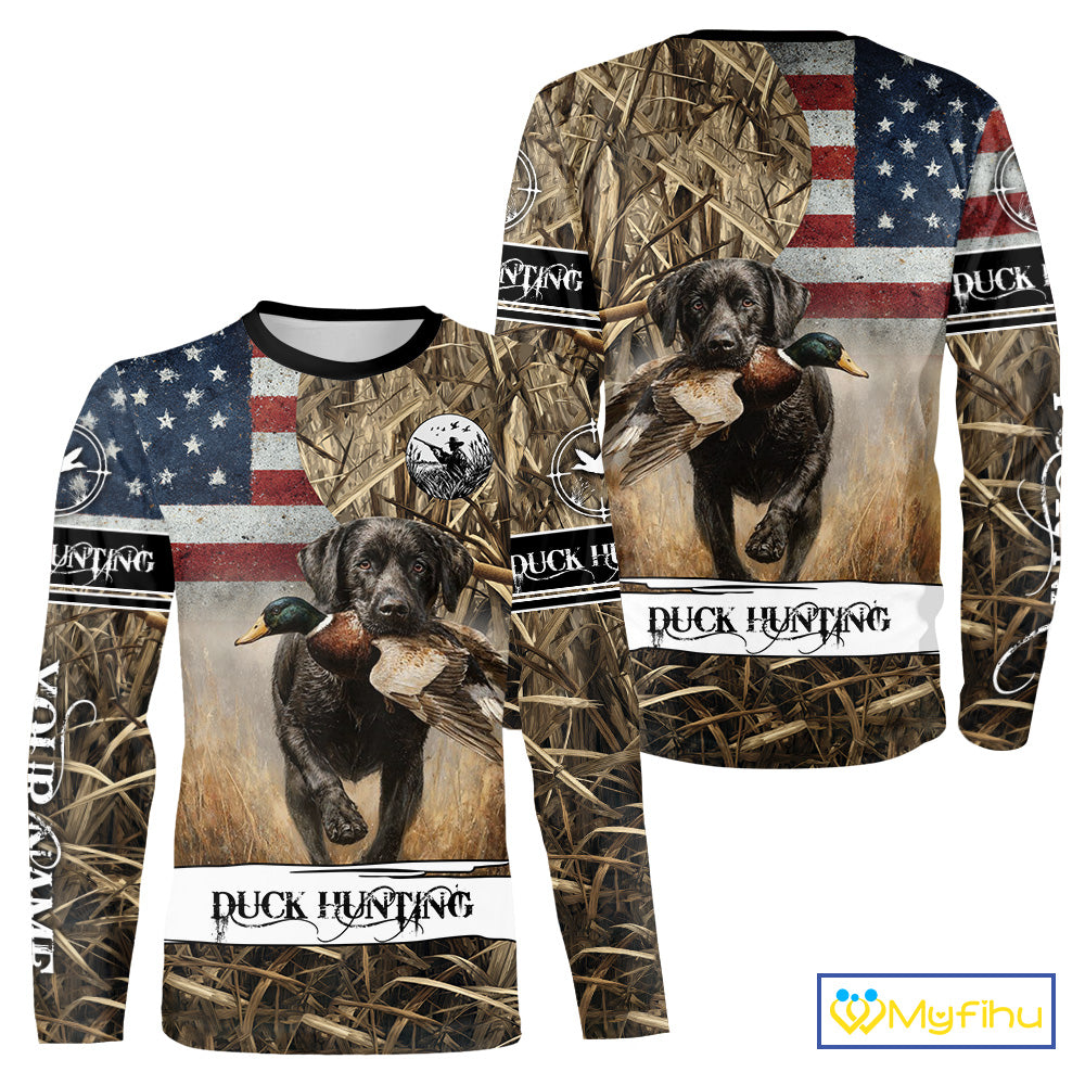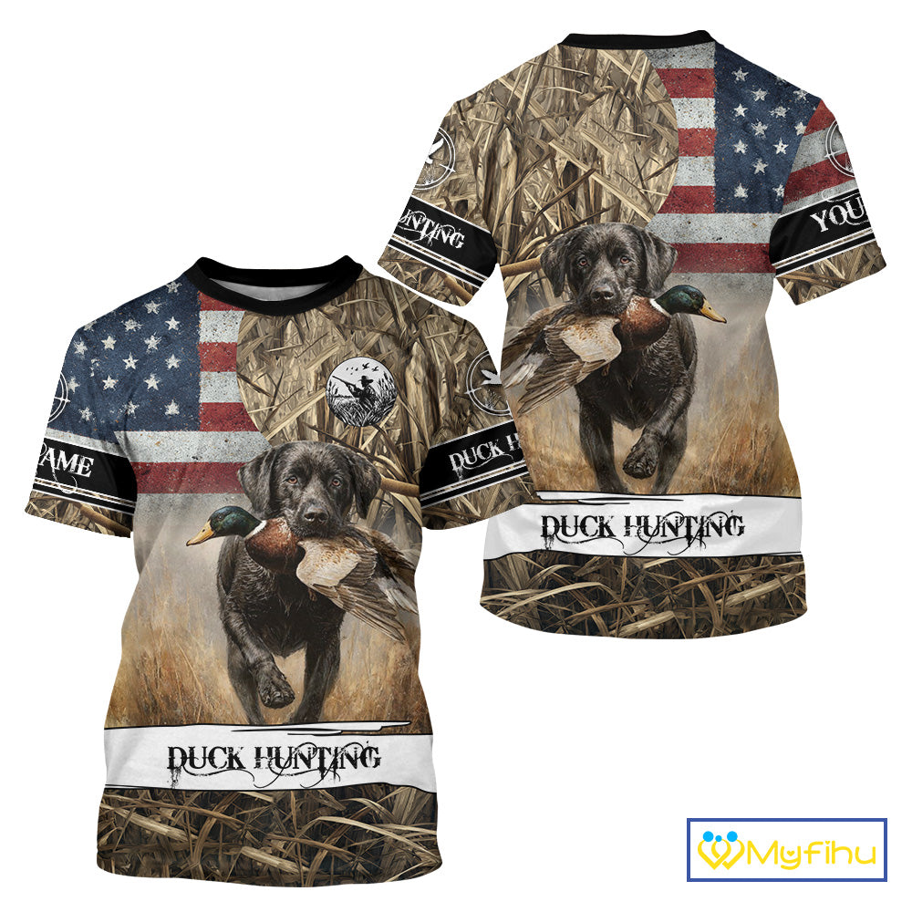 Duck Hunting Waterfowl Camo US Flag Black Labrador Retriever Dog Shirts, Duck Hunting Gifts NBT80