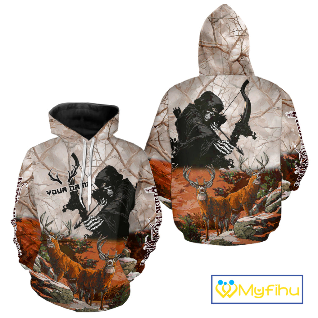 Orange Bowhunting Deer Camouflage Personalized Hunting Bow Grim Reaper Shirt NHT18