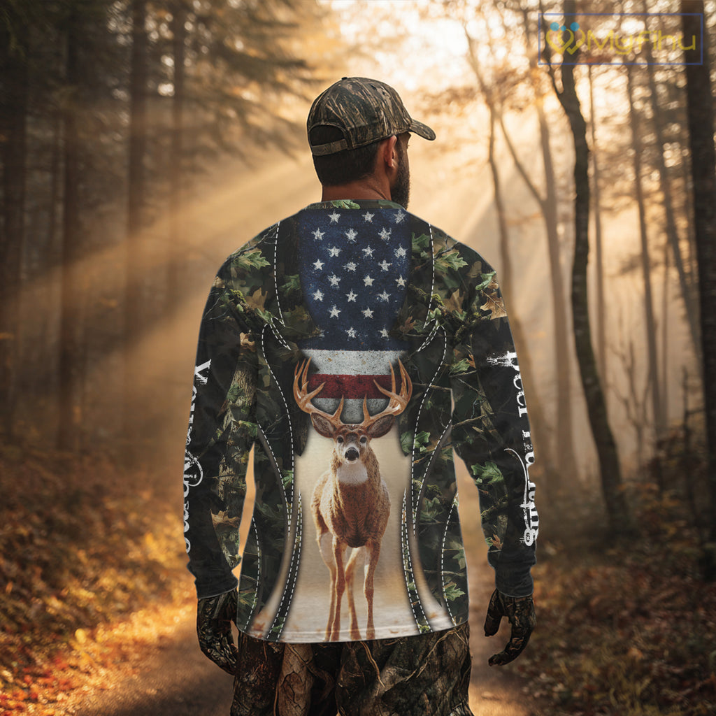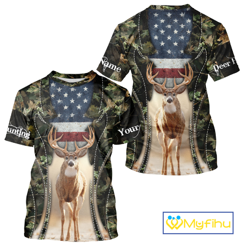 Designed for deer hunters and outdoor enthusiasts, this shirt blends style, comfort, breathable and funtionality in one. The unique hunting-inspired design can be personalized with your name, along with details like the American flag, camouflage patterns, and more - making it the perfect gift ideas for hunters during deer hunting season.