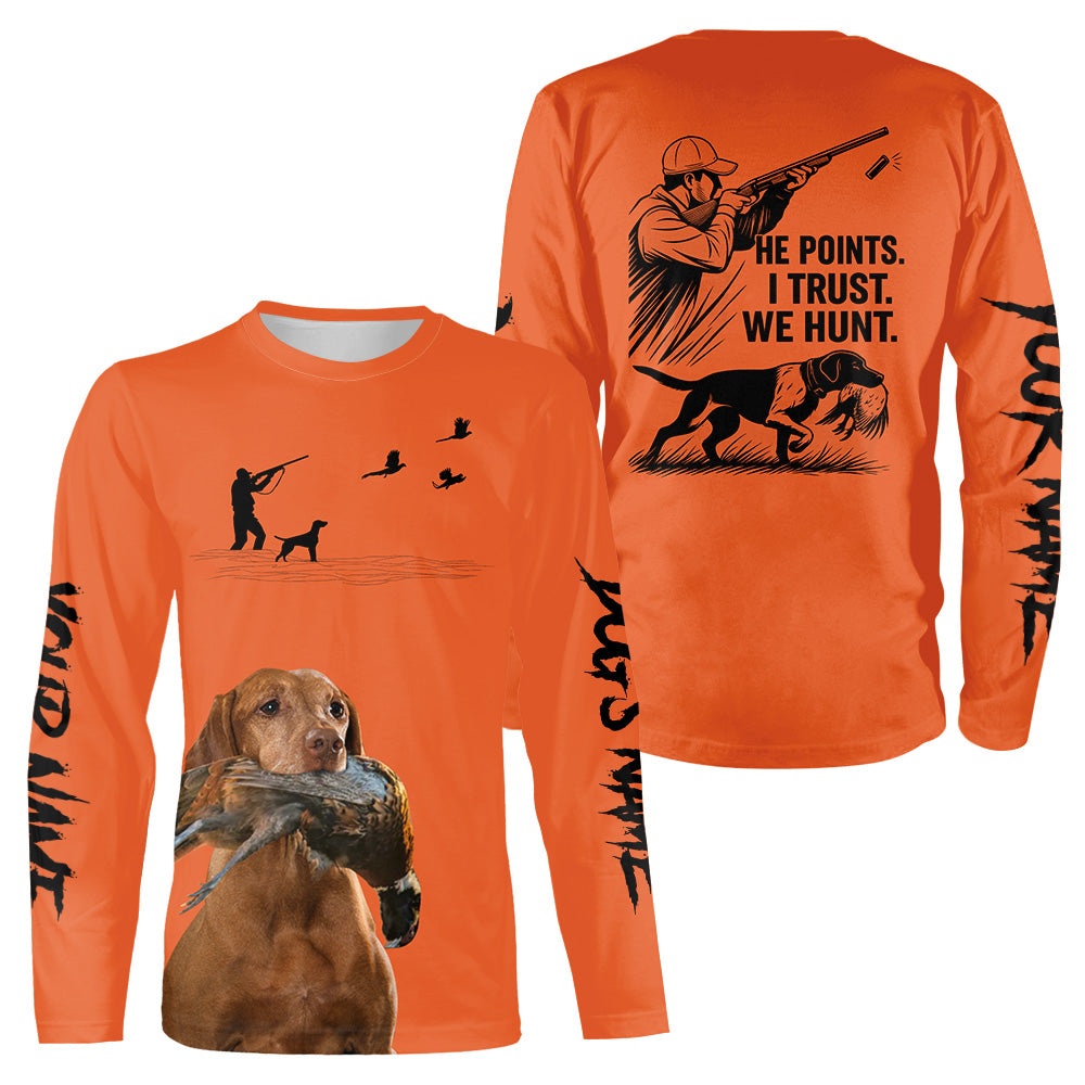 Designed for passionate hunters and dog lovers, this custom hunting hoodie combines rugged style with personal customization. Featuring a lifelike image of a hunting dog in action, pheasant hunting, and orange color scheme, this hoodie is a must-have for any hunting enthusiast.