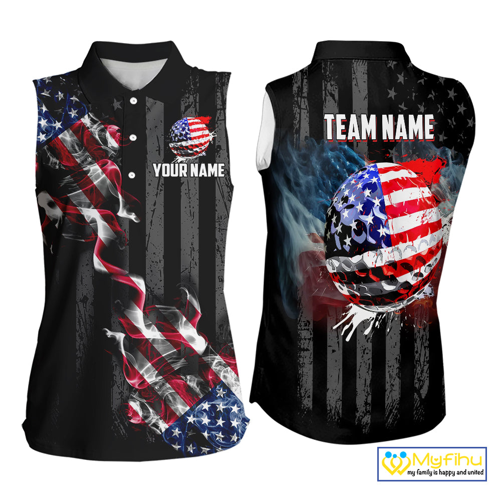 Black American flag smoke Women's Sleeveless Polo Shirt Custom Patriotic Team Golf attire NQS10615