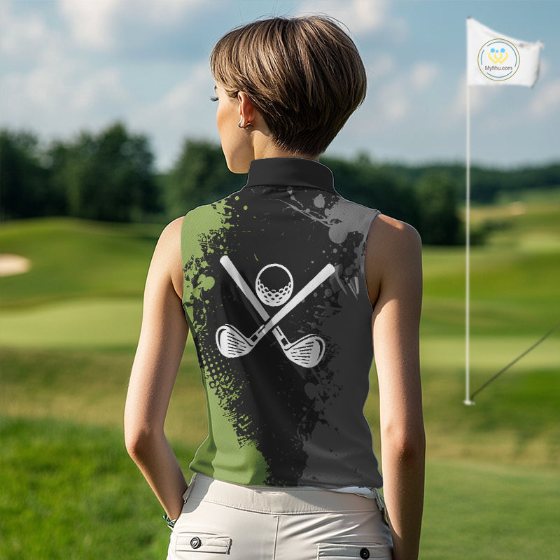 Black and Green Camo Sleeveless Golf Polo shirt for Women Custom golf team uniform golf outfit NQS9797