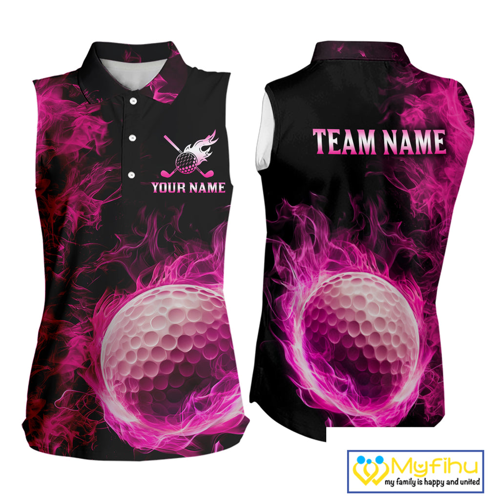 Black and Pink Flame Golf Ball Women sleeveless polo shirt custom golf outfit for ladies golf clothes NQS9869