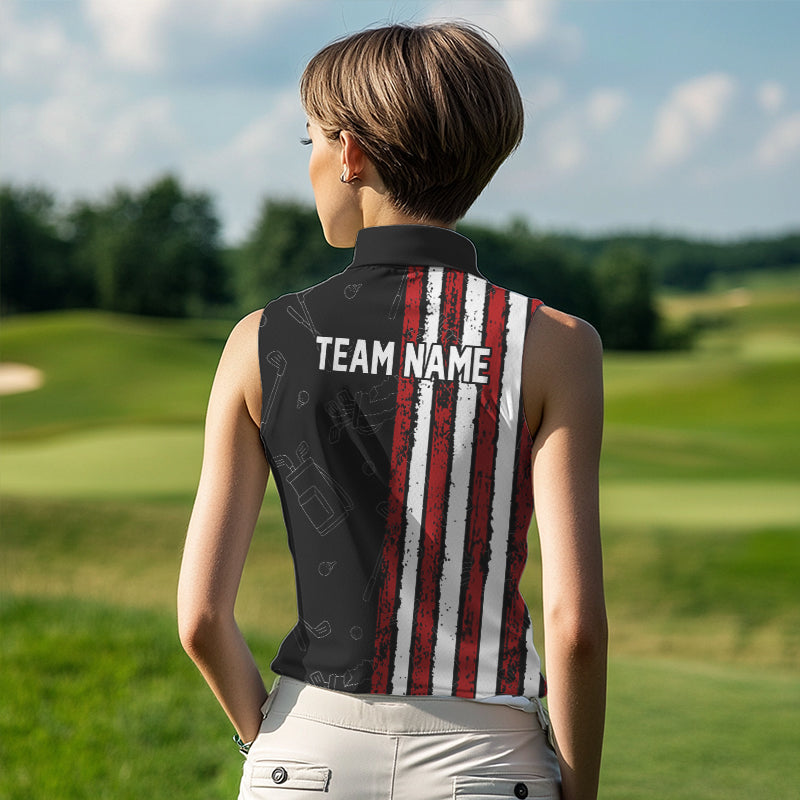 Black Camo American Flag Womens golf shirts sleeveless custom Patriotic golf outfit Team ladies Jersey NQS9727