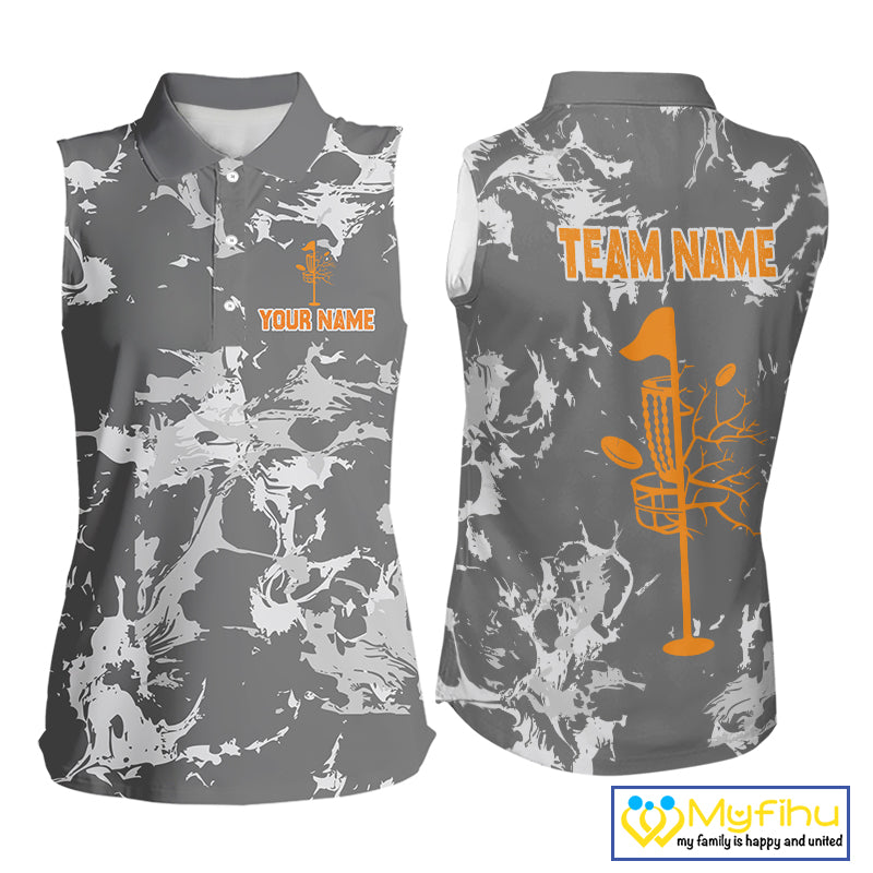 Gray Camo Orange Disc Golf basket Womens Disc golf sleeveless polo shirt Custom team disc golf jerseys NQS9975