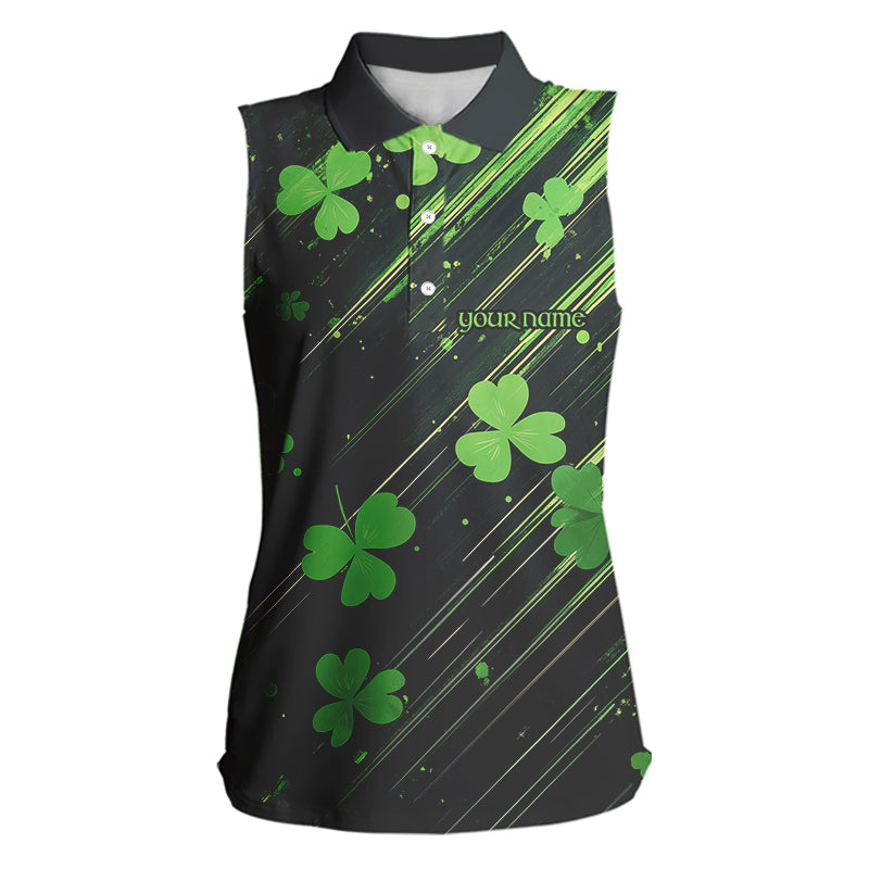 Personalized Black & Green Clover pattern Women sleeveless polo shirt St Patrick Day ladies golf wear NQS9574