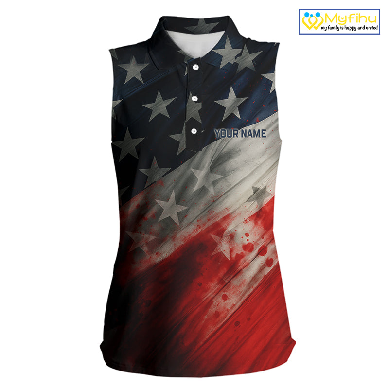 Personalized sleeveless golf polos shirts American flag 4th July custom patriotic ladies golf wears NQS9945