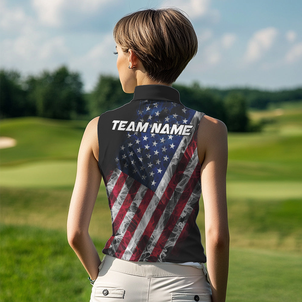 Smoke American Flag Black Women Sleeveless Golf Polo shirt Custom patriotic Team golf uniform jersey NQS9780