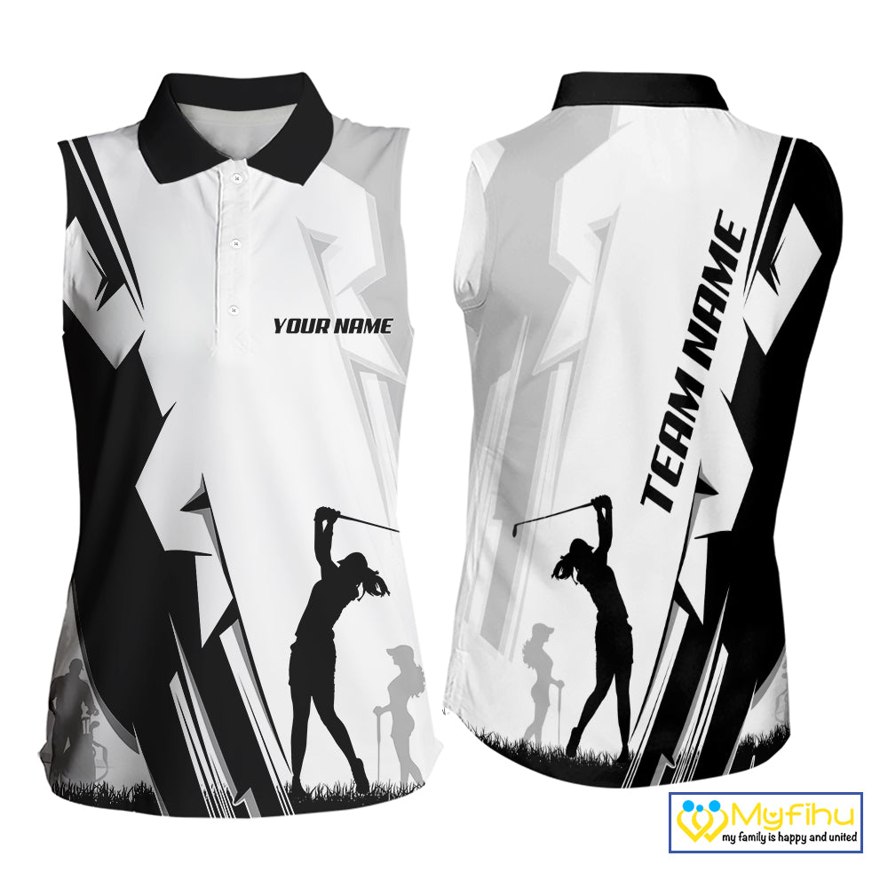 Women Sleeveless golf polo shirts custom white and black golf tops for ladies, best golf gifts NQS10061