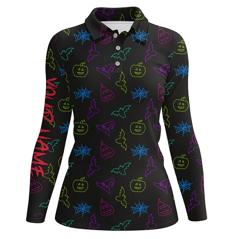 Colorful neon Halloween pattern black Women Golf Polo Shirts Custom golf attire for ladies golfer gift NQS8557
