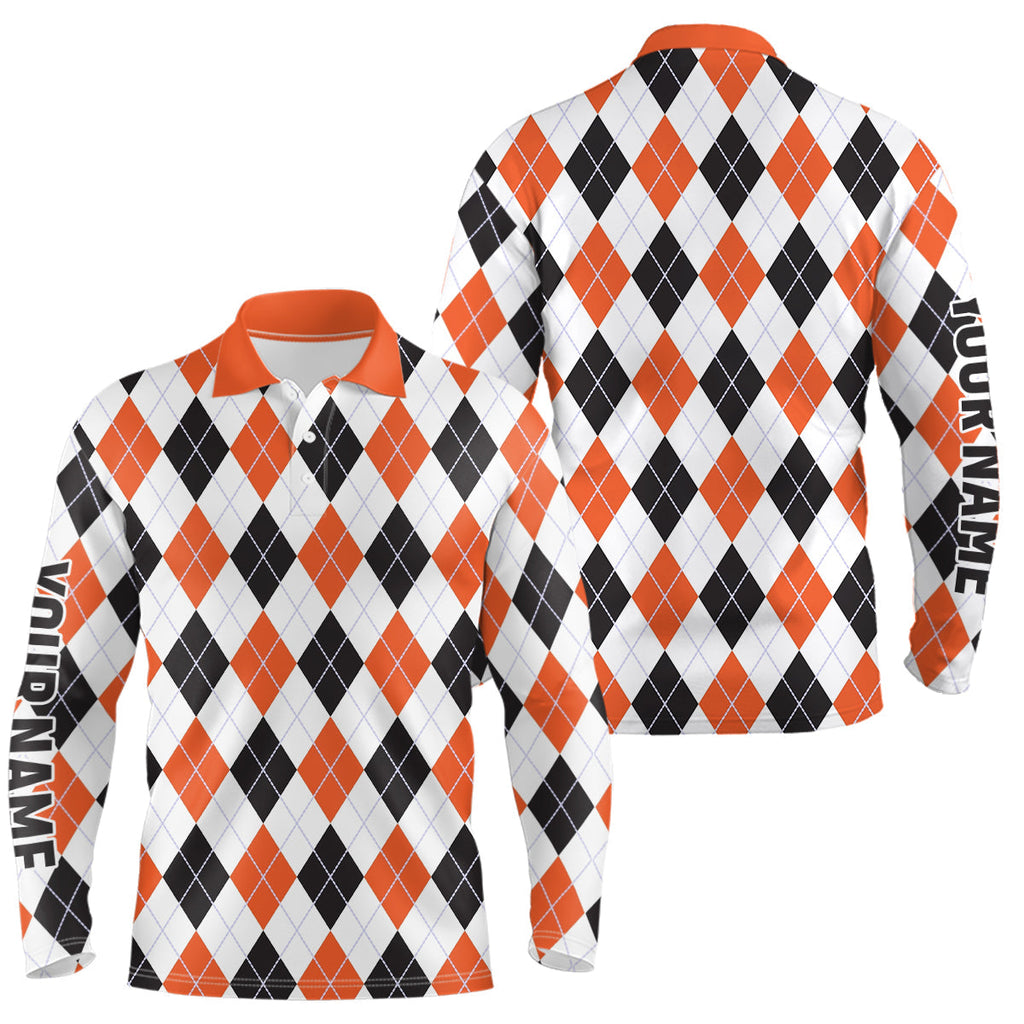 Mens golf polo shirts custom argyle plaid Halloween pattern golf attire for men, unique golf gifts NQS6248