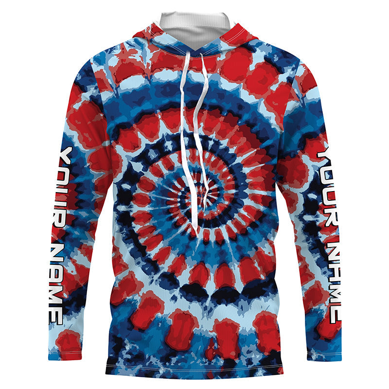 Spiral American flag Tie Dye Custom Shirt, Performance long sleeve UV protection Fishing shirt FSD3366