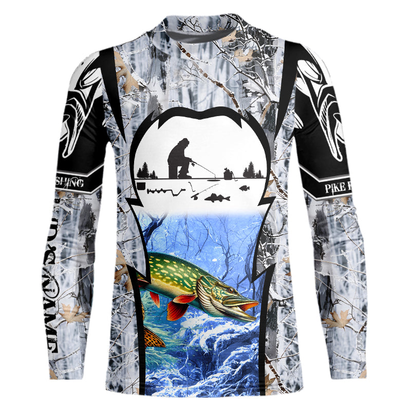 Northern Pike ice fishing Winter camo custom unisex Long sleeve fishing shirt, Ice fishing Pike jersey NQS9192