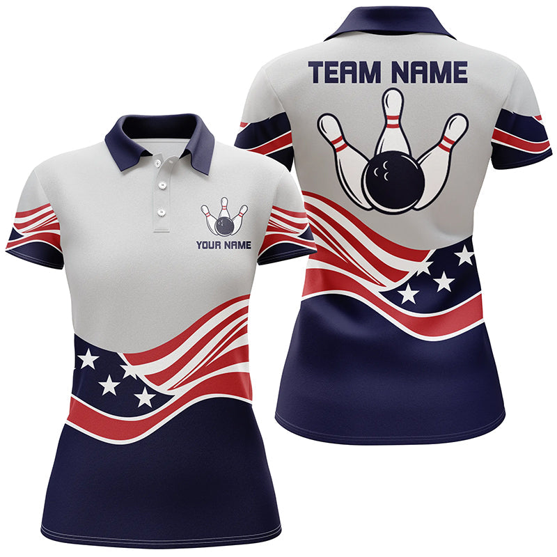 American Flag Bowling Jersey For Women Custom Polo Bowling Shirt Patriotic Bowling Shirt For Team NQS6135