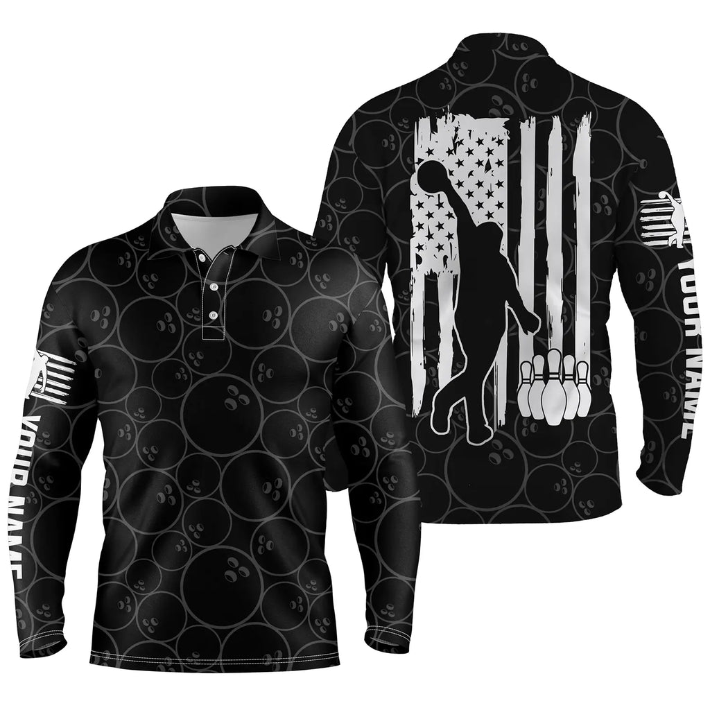 American flag patriotic black bowling pattern custom bowling polo shirts for men, team bowling jerseys NQS4700
