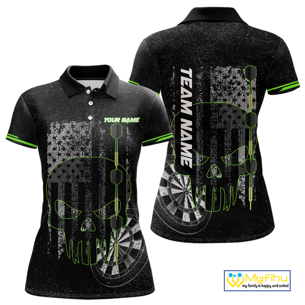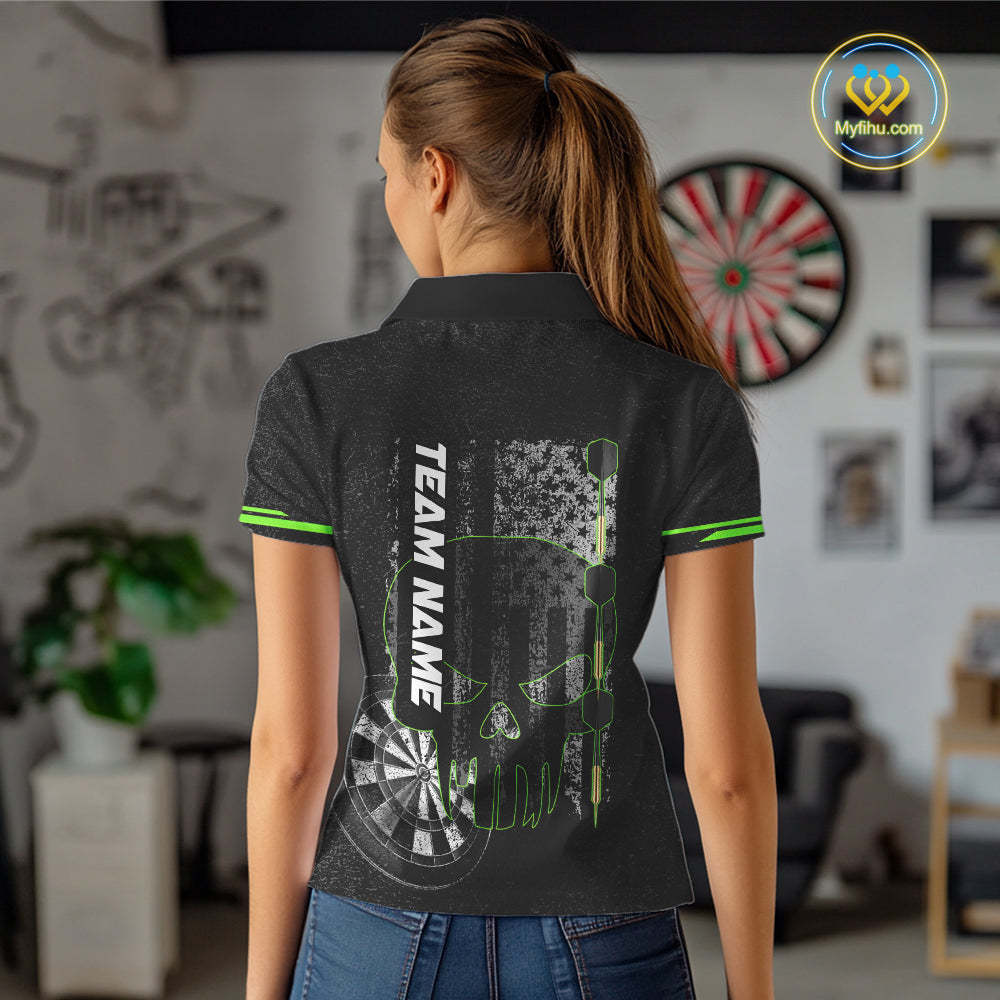 Black & White grunge American Flag Skull Women Darts Shirt Custom patriotic Team Darts Jersey | Green NQS10748