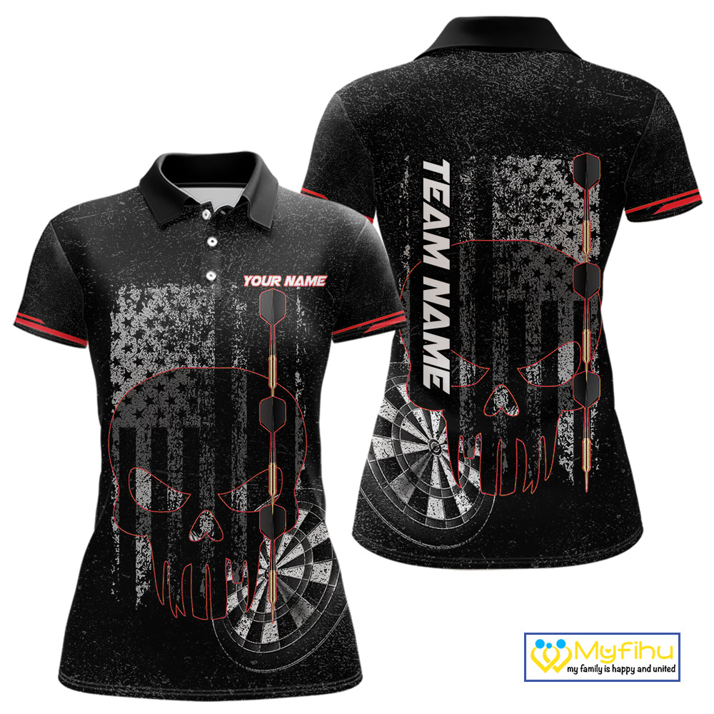 Black & White grunge American Flag Skull Women Darts Shirt Custom patriotic Team Darts Jersey | Red NQS10749