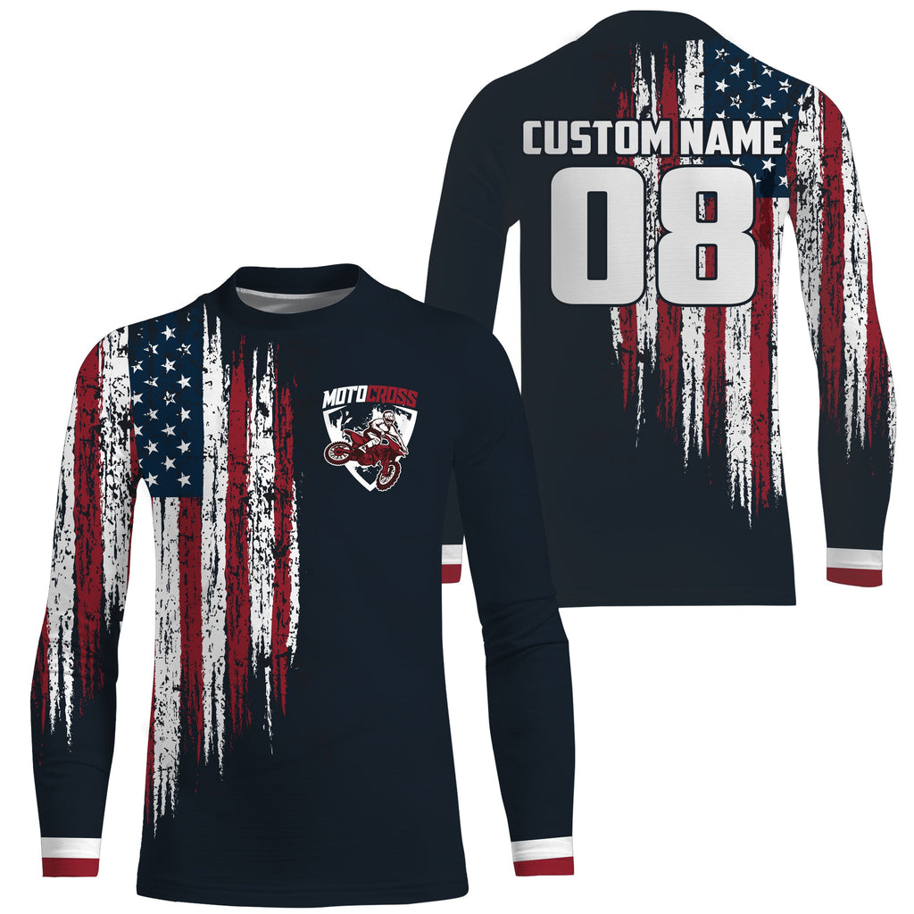 Custom number&name MX dirt bike racing jersey patriotic motocross youth men UV off-road motorcycle PDT168