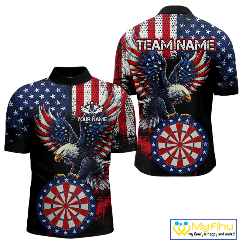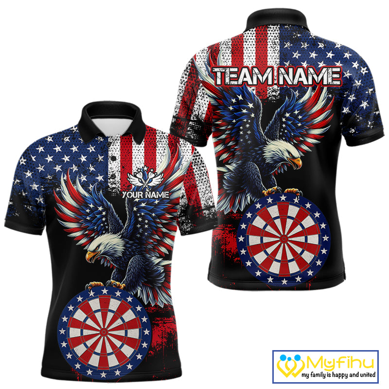 Personalized Patriotic Eagle Dartboard Jersey For Men Custom American Flag Darts Team Shirt TDM4755