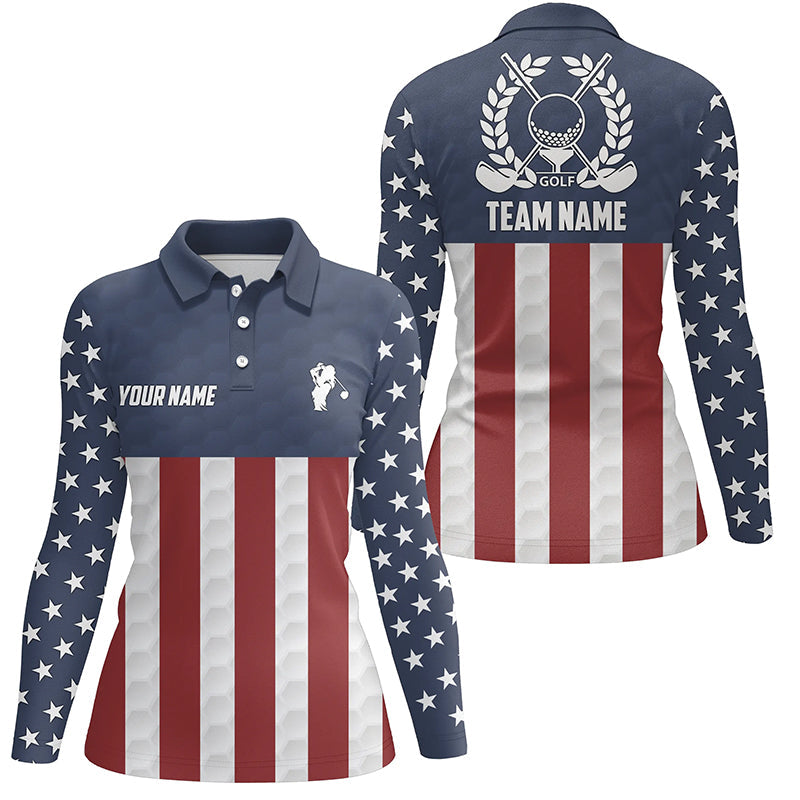 Womens golf polo shirts golf clubs American flag custom patriotic ladies golf shirt, golf gifts | Navy NQS5859