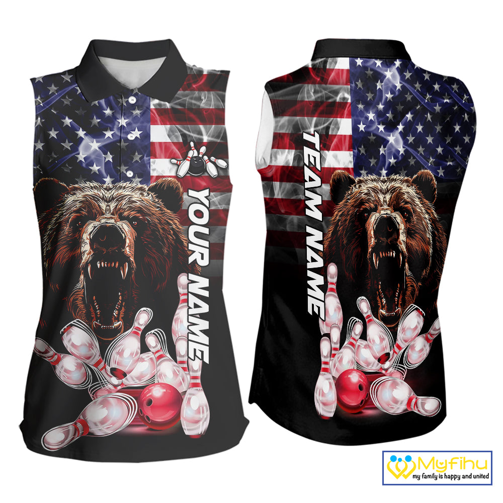 American Flag Bear Bowling Sleeveless Polo shirt Custom patriotic Team Bowling jerseys NQS10287
