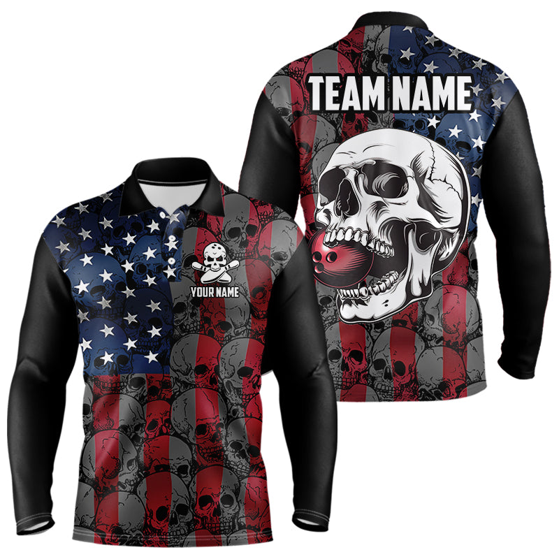 American Flag Skull Camo Bowling Shirt For Men Custom patriotic Team Jersey bowling attire for men NQS9790