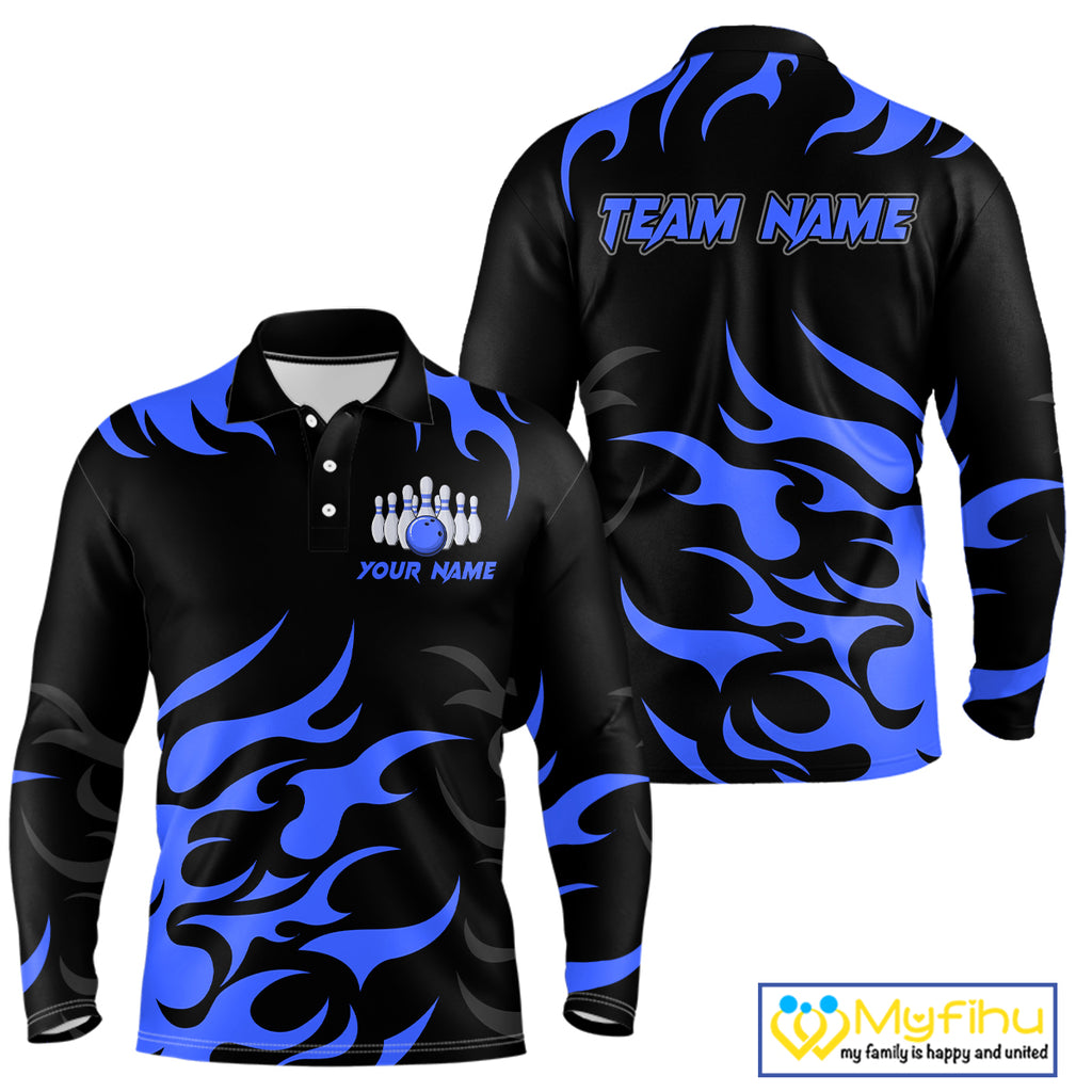 Black and Blue Flame Bowling shirts for Men Custom team bowling jerseys, mens bowling apparel NQS10267