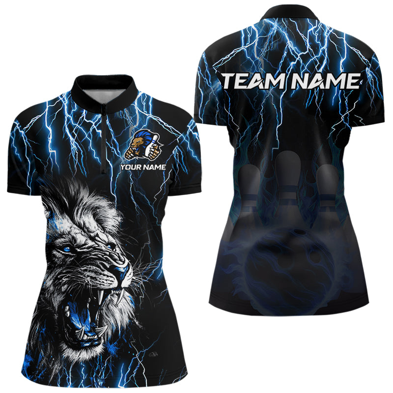 Black and Blue Lightning Thunder Lion Bowling Shirt For Women Custom Lion Bowling Team Jerseys NQS9645