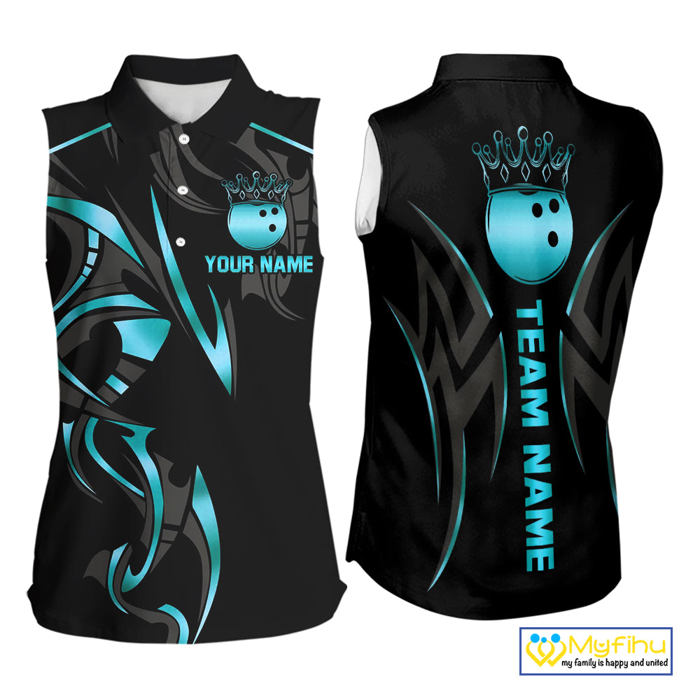Black and Cyan Blue crown Bowling sleeveless polo Shirt Custom Bowling Team jerseys NQS10075
