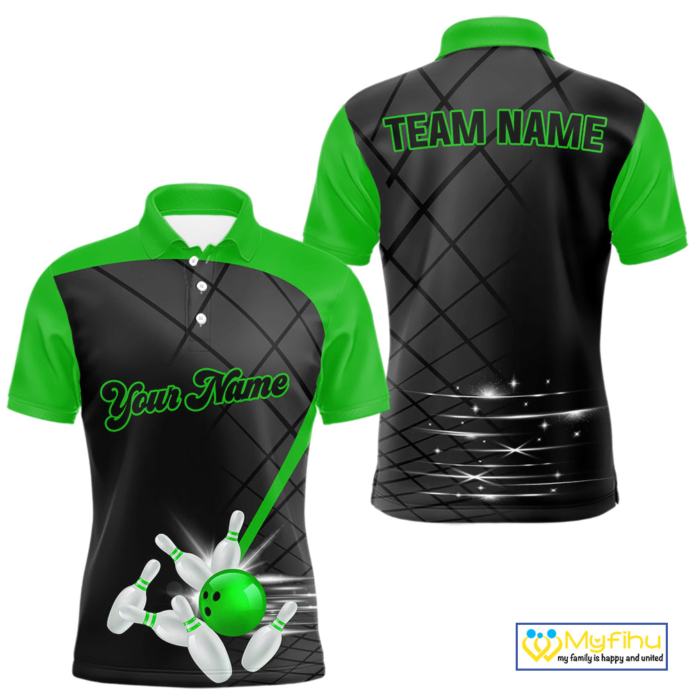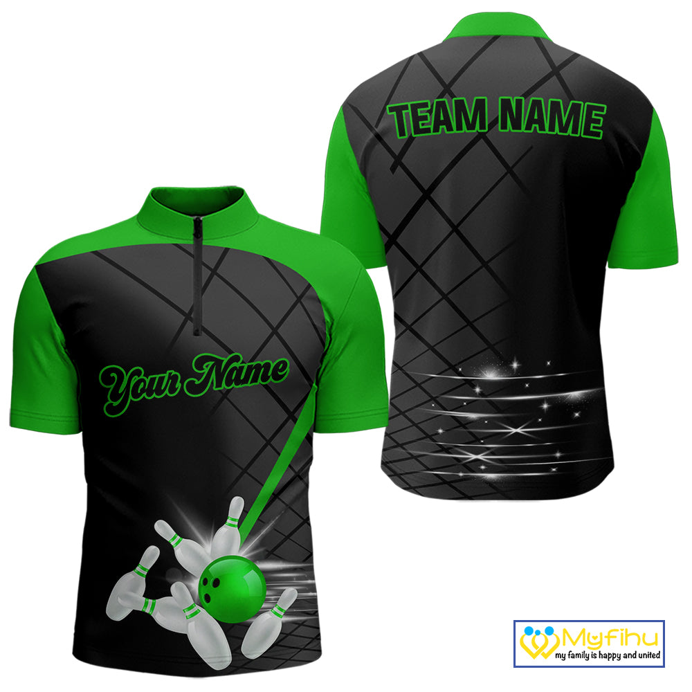 Black and Green bowling league jersey custom Mens Bowling Polo, 1/4 zip Shirt, gifts for men bowler NQS10096