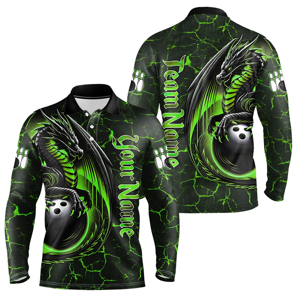 Black And Green Custom Dragon Bowling Shirts For Men, Dragon Bowling Team Shirts NQS9477