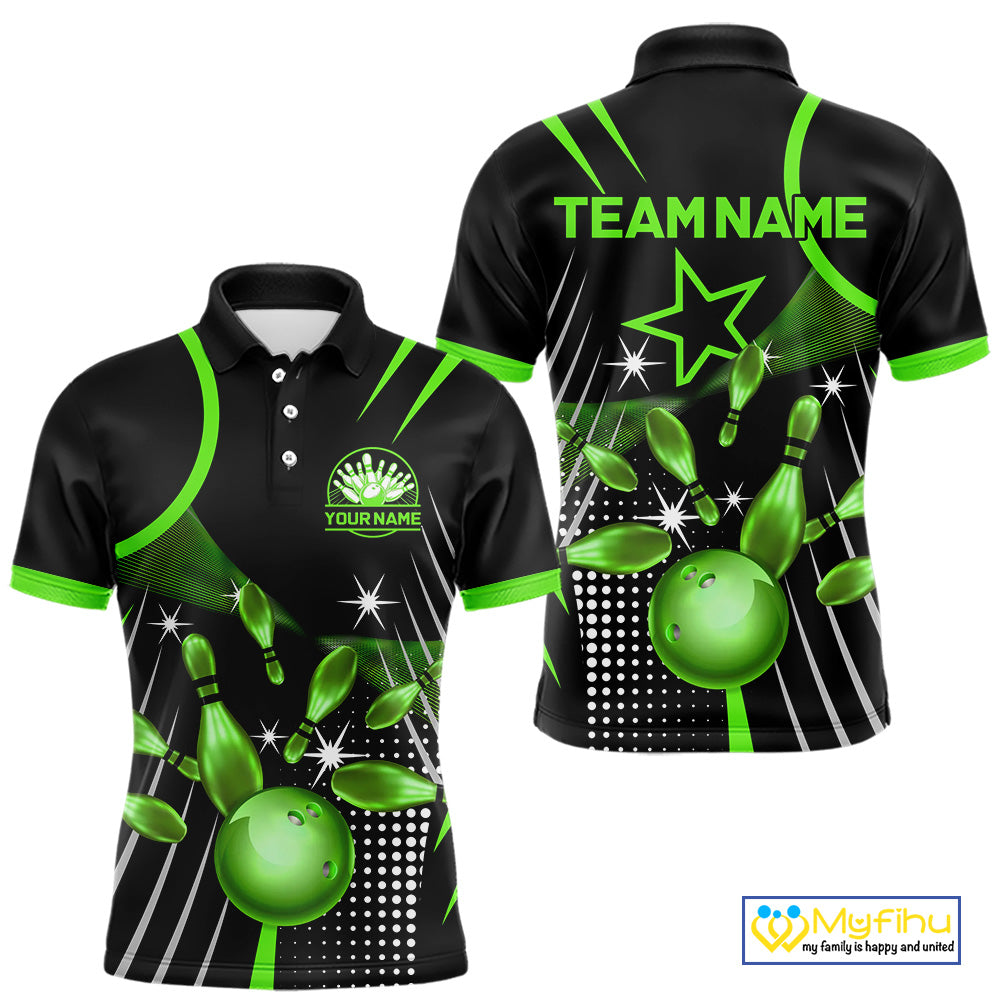 Black and Green Mens Bowling Polo, Quarter Zip Shirts Custom Bowling outfit men Team Jerseys NQS9957