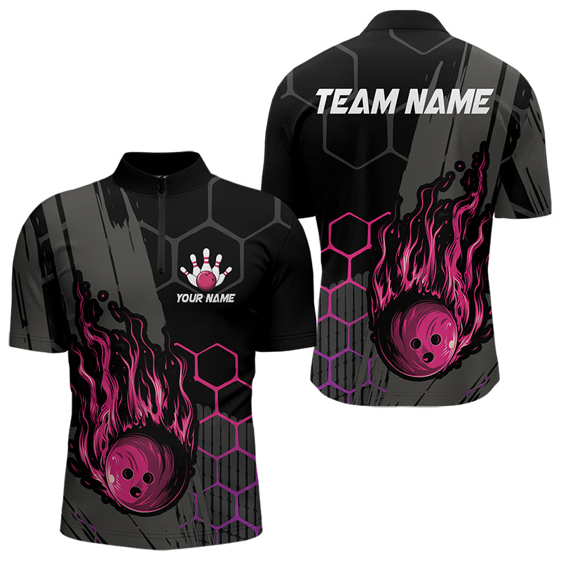 Black And Pink Flame Bowling Shirts For Men Custom Bowling Team League Jersey, Gift For Bowlers NQS9385