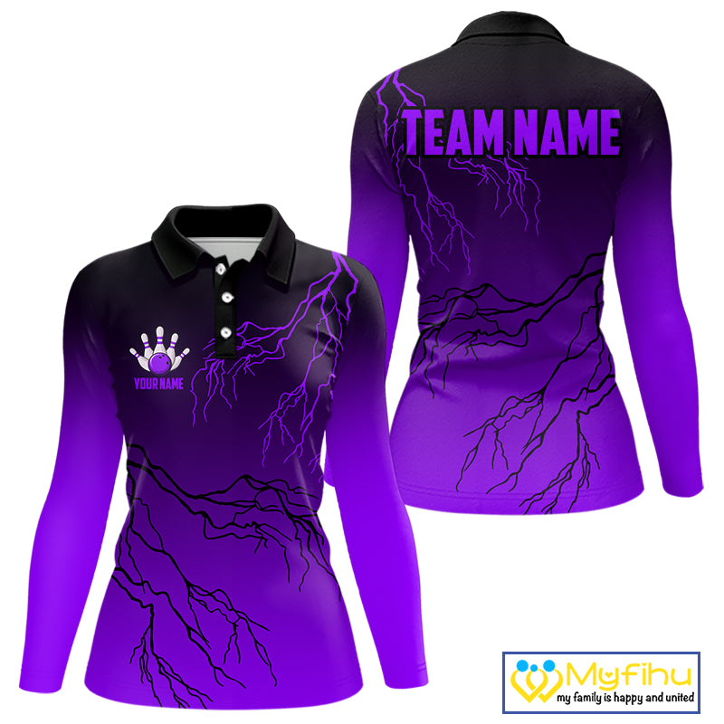 Black and Purple gradient Lightning thunder storm Bowling shirts for Women Custom Bowling Team Jersey NQS10136