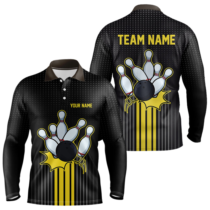 Black and Yellow Bowling Polo, Quarter Zip Shirt For Men Custom Team Mens Bowling Jersey NQS9652